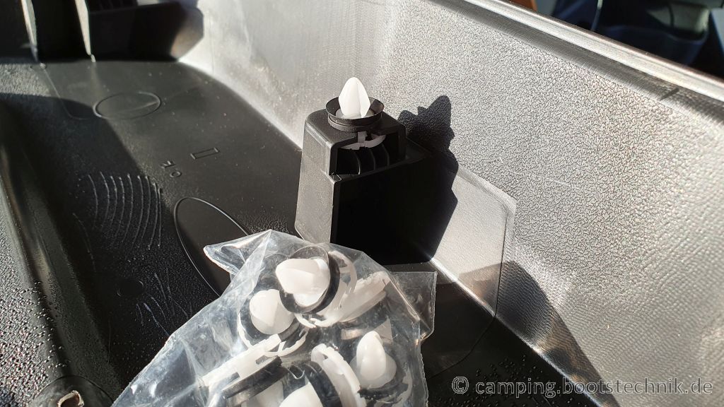 Und jetzt kommt der schwierige, destruktive Teil. Die besagten Clips stecken in passenden Bohrungen in der Tür: