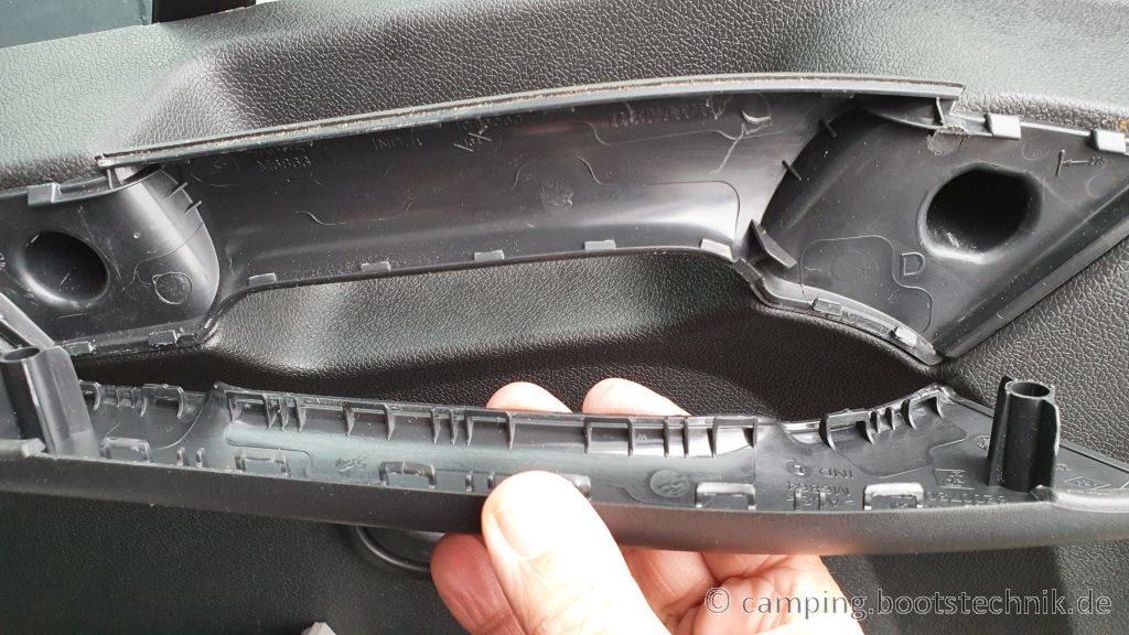 Dann hält die Türverkleidung nur noch mit oben genannten Clips und der Oberkante, die über den Fensterrahmen greift.