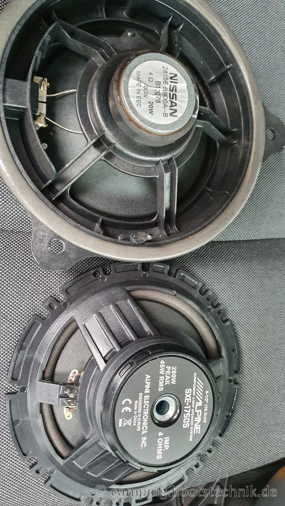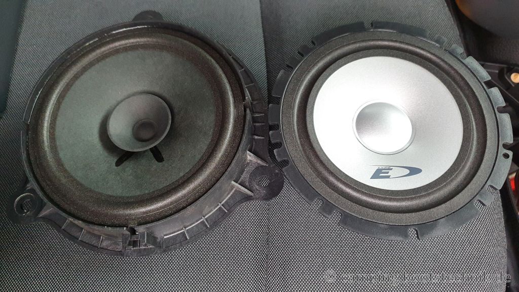 Wie eingangs erwähnt, klingen die serienmäßigen Lautsprecher eher wie ein Würfelbecher, und wenn wir die Tür schon mal aufhaben, tauschen wir die auch gleich.