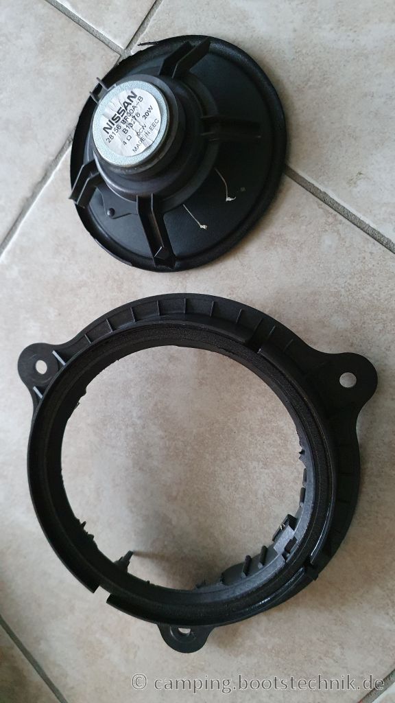 Die Tieftöner sind eigentlich für den flächigen Einbau im Blech gebaut. Damit wären sie beim Renault Master gut drei Zentimeter von den Lautsprechergittern entfernt – das ist Blödsinn. Also habe ich alten Lautsprecher hingerichtet und ihnen ein zweites Leben als Lautsprecherhalter geschenkt: