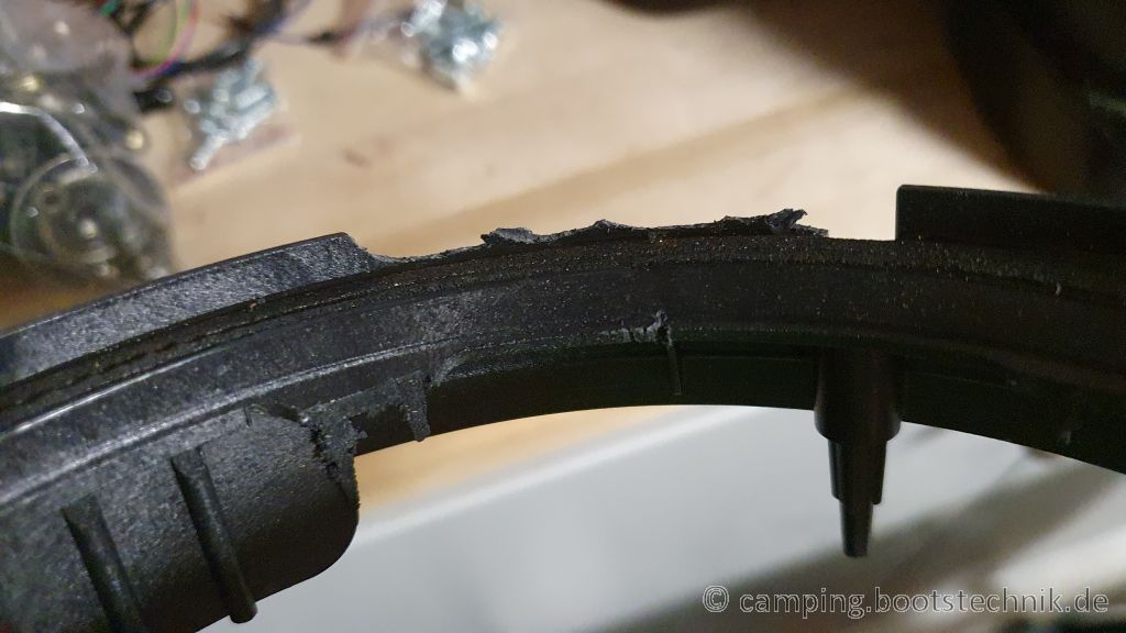 - Mit der Zange den umlaufenden Kunststoffsteg abknipsen.