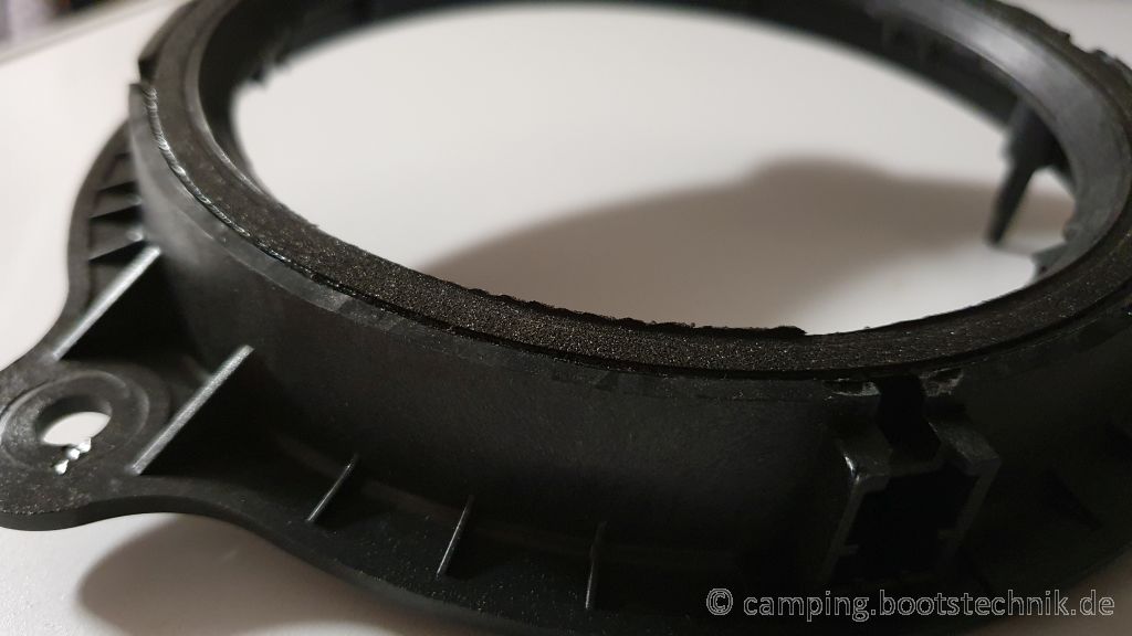 Ich habe dann noch Streifen des Alubutyls drumherum geklebt, damit auch der Lautsprecherhalter nicht dröhnt.