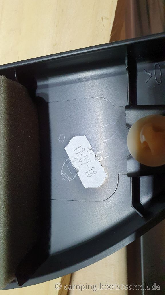 - Gegebenenfalls mit Teppichmesser, Schleifer oder Feile nacharbeiten, damit der neue Lautsprecher plan aufliegt.